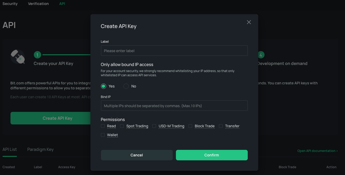 To set up Hummingbot is First we'll need an API key from BIT. Login to your BIT account to get your API keys, you can also create sub-accounts under your main account to generate independent API keys.