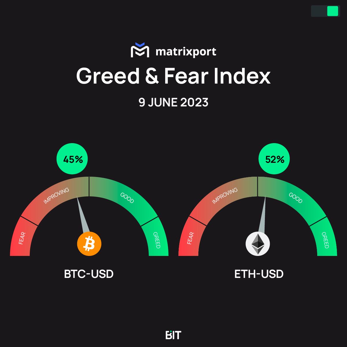 👇 6) One of our key trading strategies for 2023 was to sell Bitcoin calls every time our Greed & Fear Index loses momentum – defined as when the index level crosses below the moving average after printing a level of >90%.