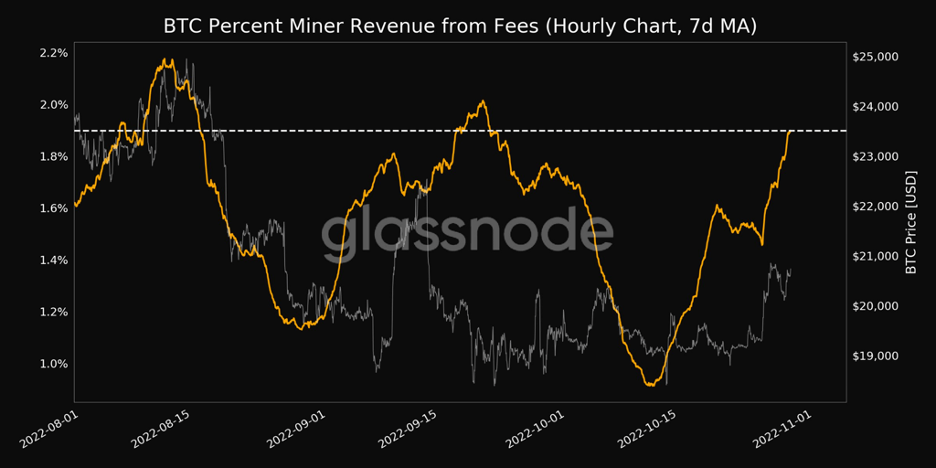 According to crypto intelligence platform Glassnode, miner fee-generated revenue tapped a one-month-high on October 29. That said, analysts believe that the selling pressure on miners could temper a bit if this revenue continues to flow at its current pace.