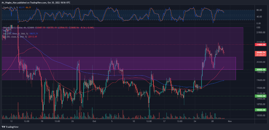 Bitcoin recorded a volcanic rebound on October 25, which set it on course to retake the $21,000 mark. However, the flagship cryptocurrency has not had much luck with this, as it has suffered two rejections from this line within three days.