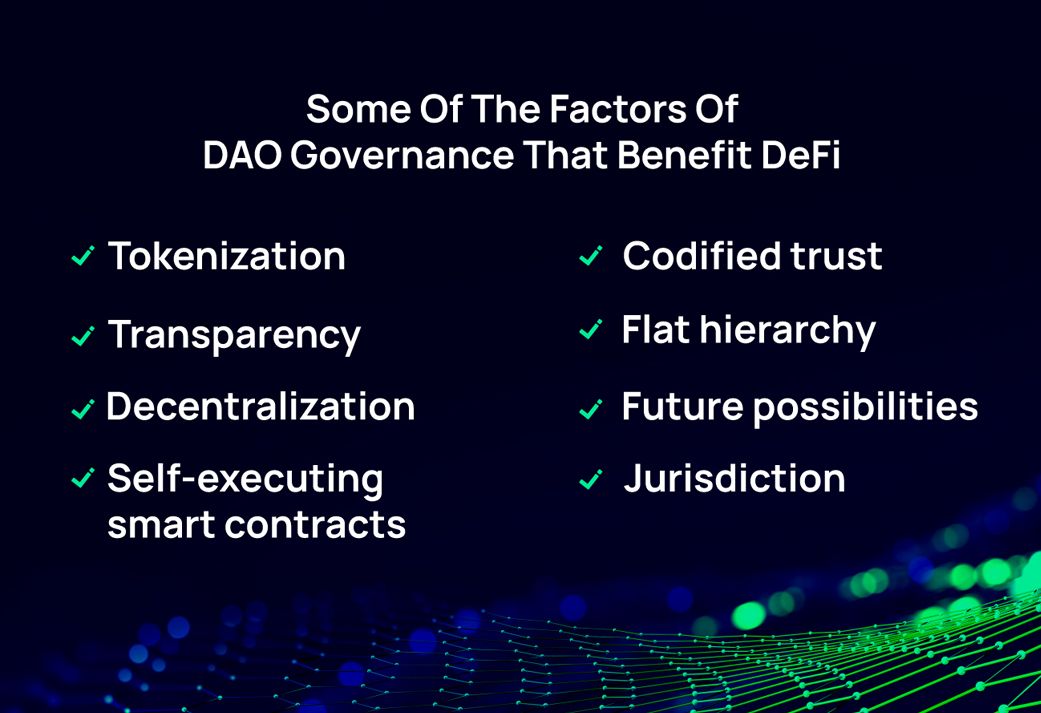 The way DAOs are governed works perfectly for DeFi protocols. Here are some of the factors of DAO governance that benefit DeFi: