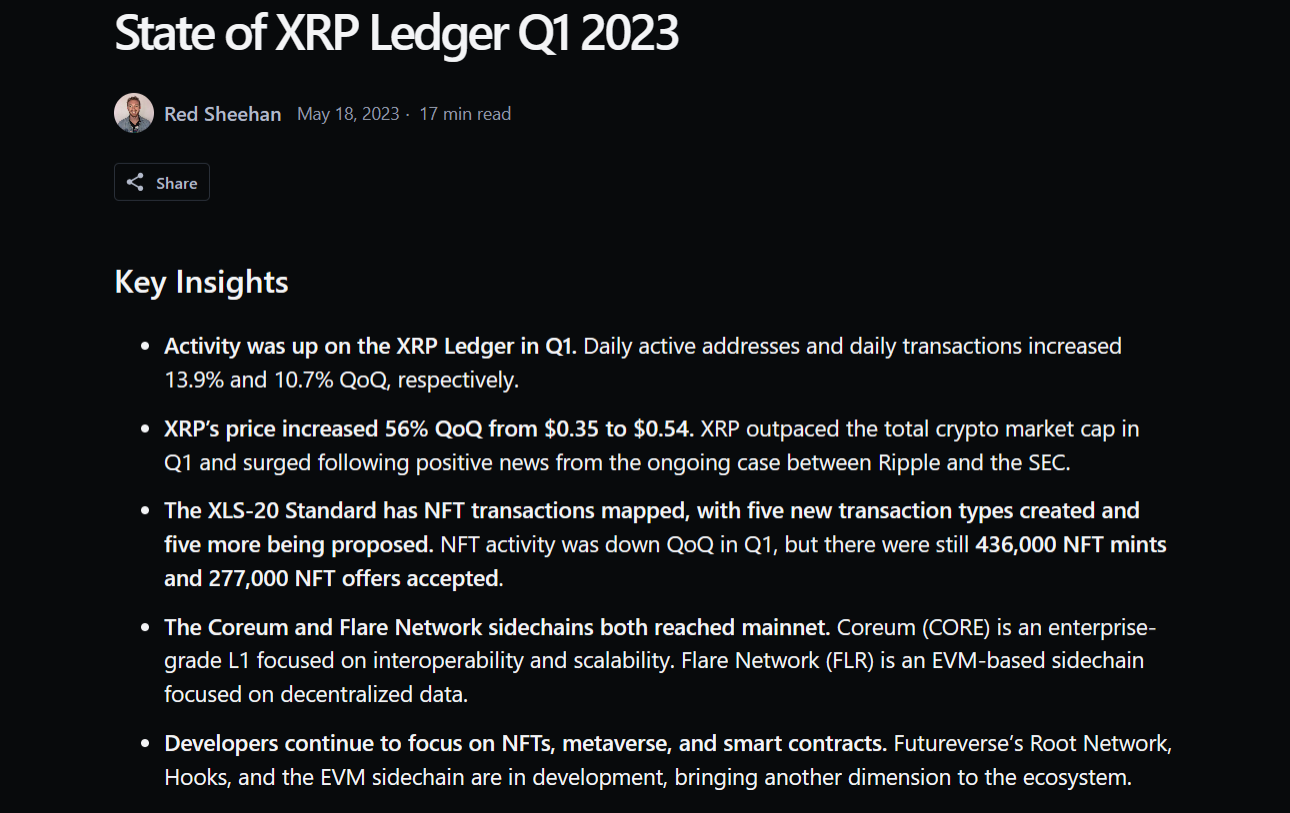 While the legal battles rage on, Ripple Labs, the masterminds behind the XRP ledger, refuse to be deterred. Despite the regulatory rollercoaster they find themselves on, Ripple's flagship products continue to march forward, leaving a trail of remarkable growth in their wake. A recent report from the esteemed crypto research platform Messari sheds light on the milestones achieved by Ripple and the XRP ledger during the first quarter of 2023.