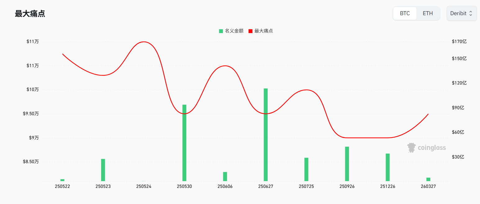 从期权角度出发,5月30日面临93亿美金的期权到期,最大痛点为9万5千美金,多空双方在下周均有动力影响价格。