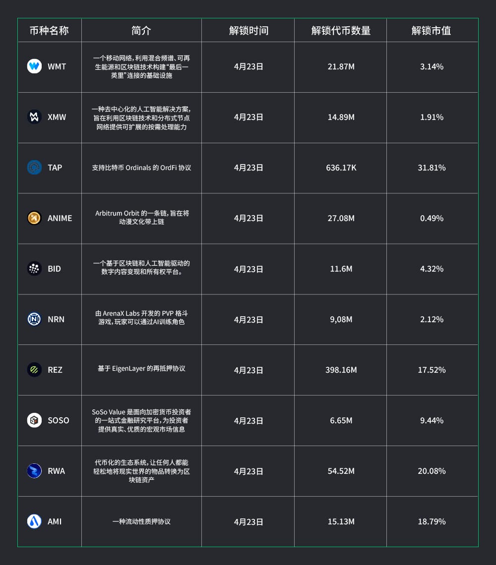 三、即将解锁代币: