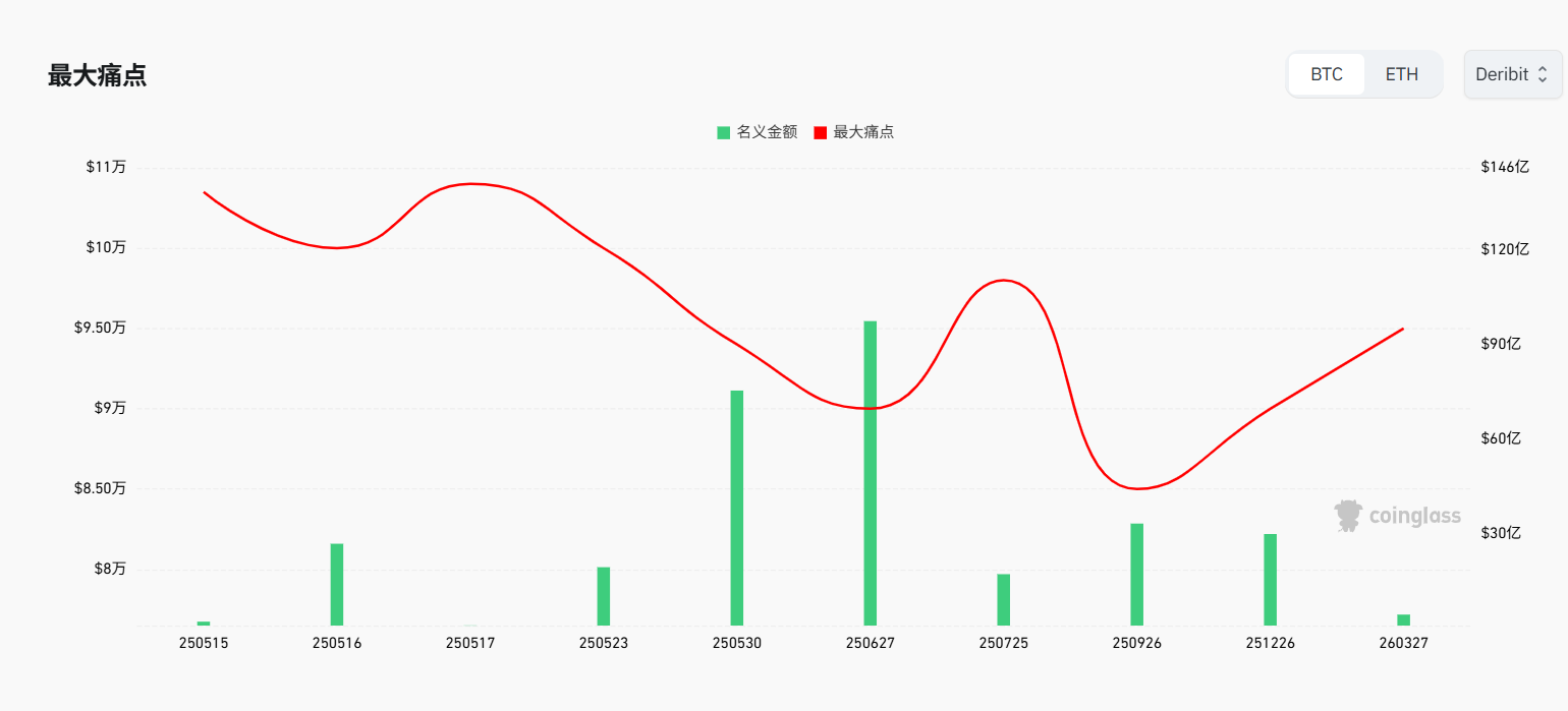 从比特币期权角度出发,在未来一周实现的名义金额处于地位,最大痛点维持在10万美金以上,多空双方未有充分动机影响价格。