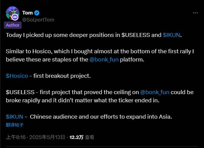 项目官推:https://x.com/bonk_fun官推:https://x.com/launchcoin