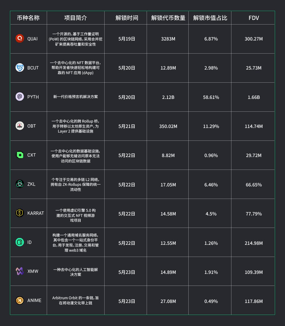 三、下周即将解锁的代币:
