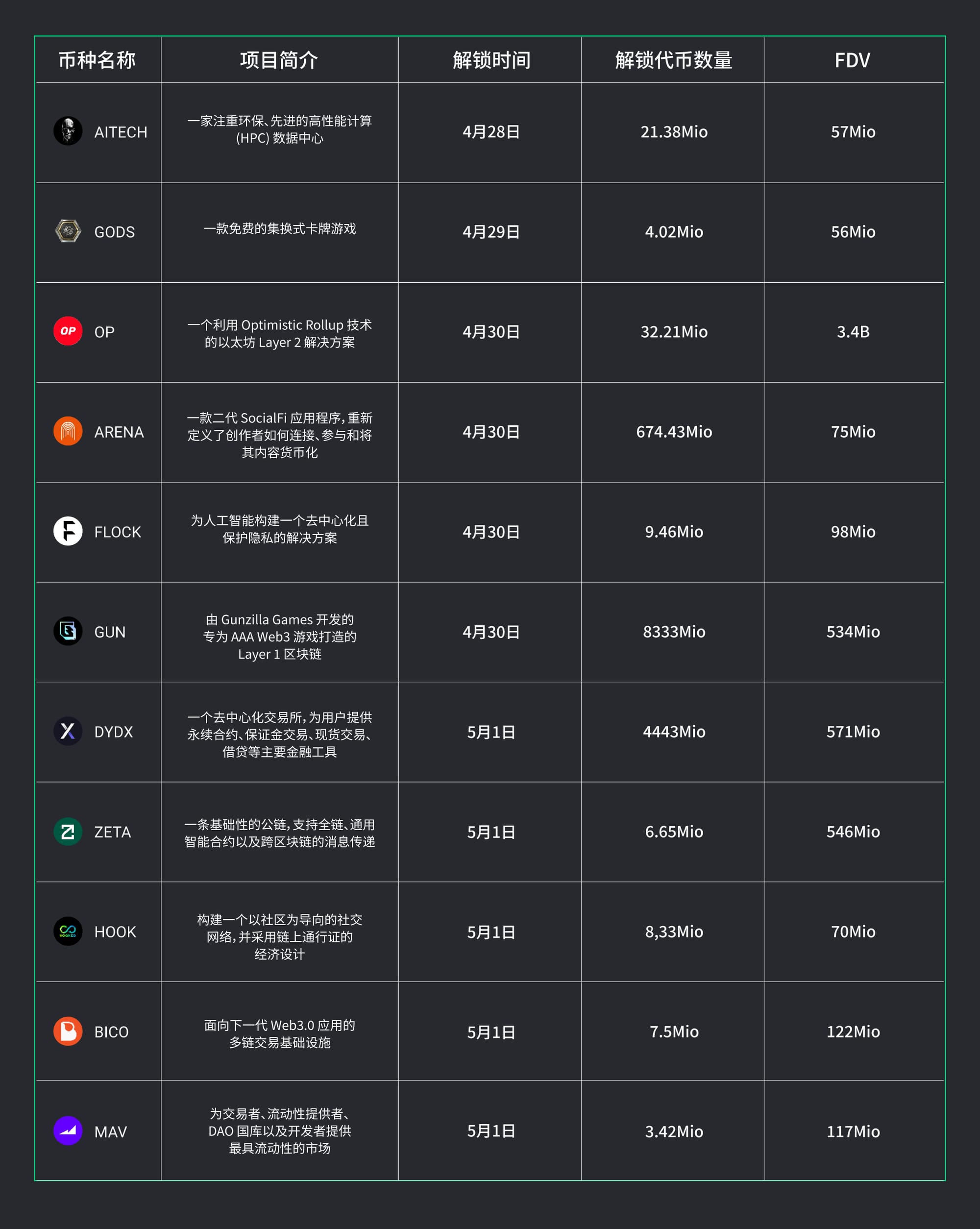 三、即将解锁的代币: