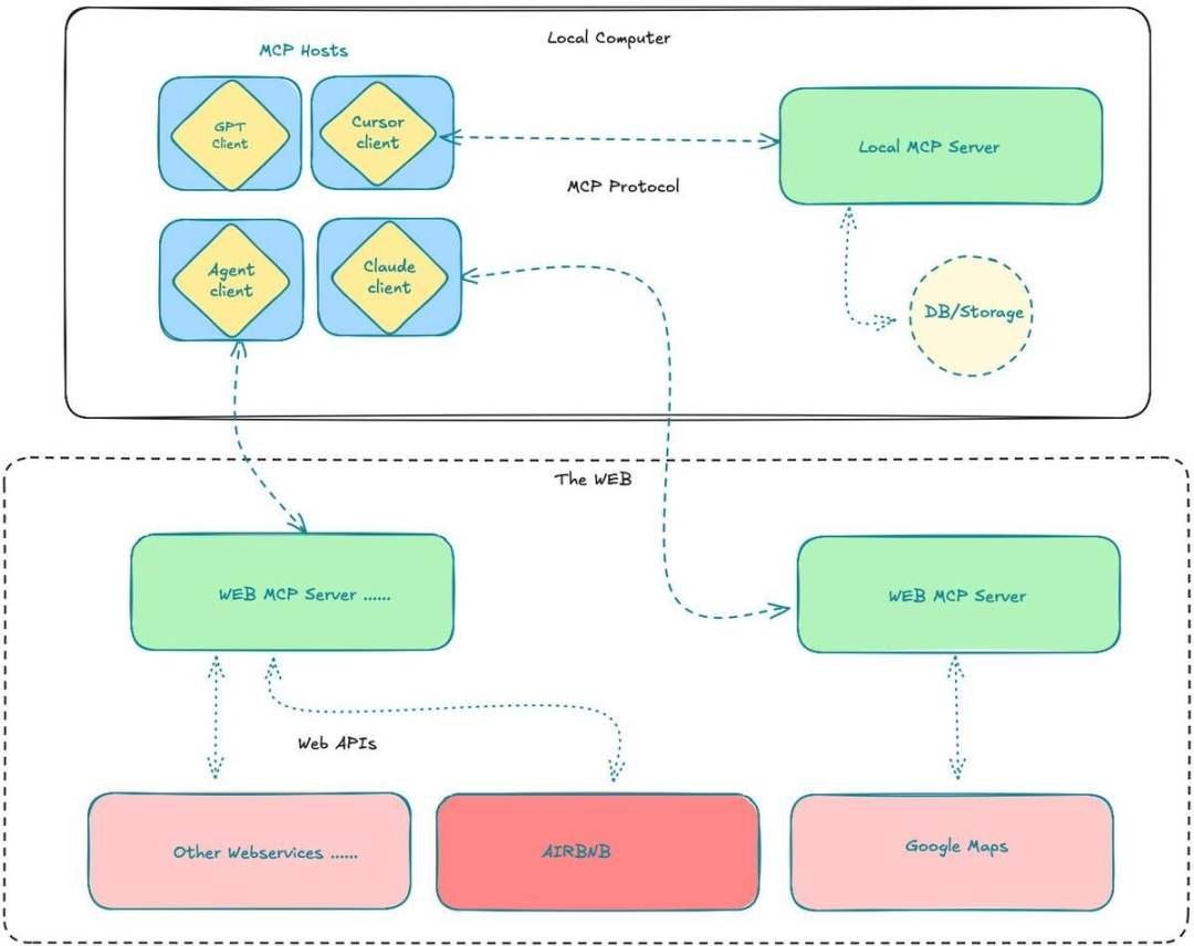 MCP概念在2024年11月下旬开源并发布,直至2025年初进入人工智能社区的视野,在ai agent如何与现实世界的业务系统和数据集成的问题上,MCP通过定义“如何将现有数据源”(文件系统、数据库、API等)连接到人工智能工作流中直接解决了这一问题,随着人们逐渐理解这点,MCP开始被视为打造真正意义上的、可投入生产的人工智能代理所缺失的一块拼图。