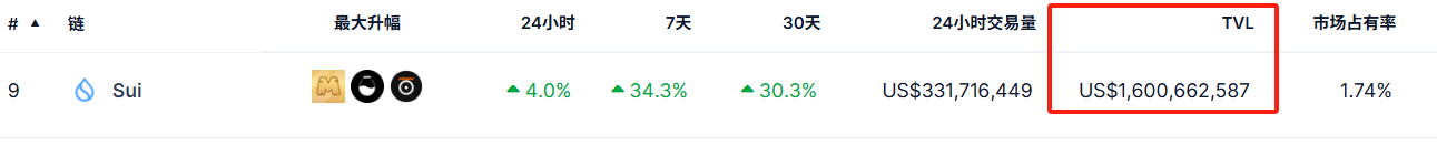 生态上sui链Defi协议较少约40个项目但TVL增长迅速,在原生U引入后大幅增加了链上流动性,未来可以关注上面推出的协议。
