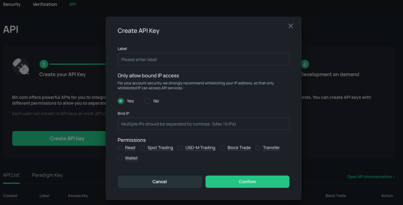 要設置Hummingbot,首先我們需要一個來自BIT的API密鑰。登錄你的BIT賬戶,獲取你的API密鑰,你也可以在主賬戶下創建子賬戶,生成獨立的API密鑰。