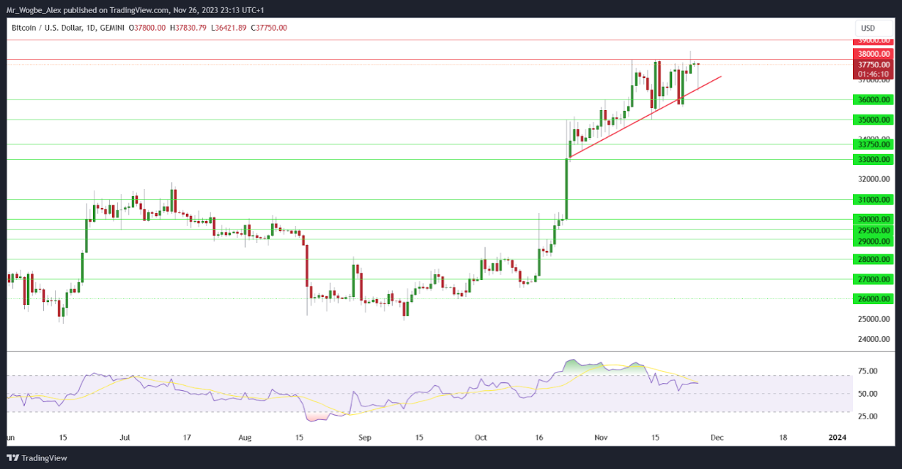 比特幣自2022年5月以來首次突破了38000美元大關,並在11月24日創下了38420美元的新高點。