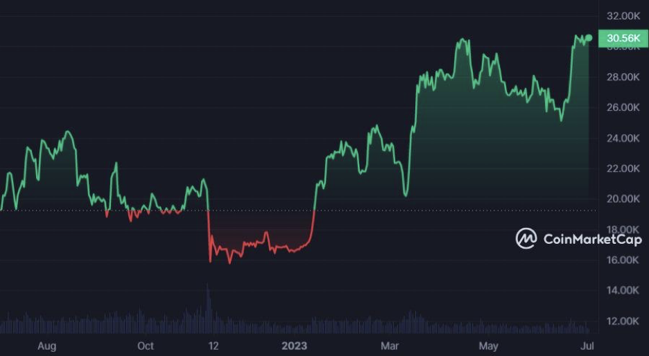 比特幣當前價格:30,560美元