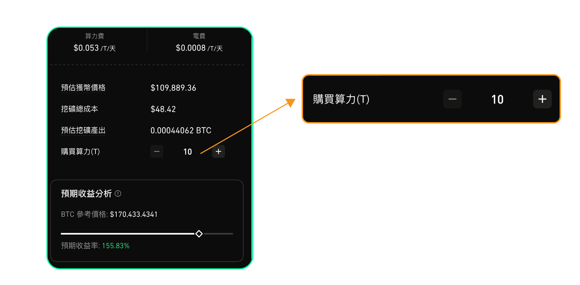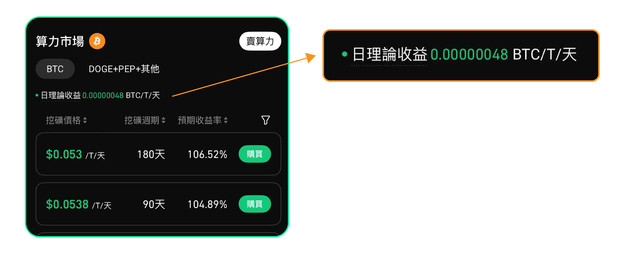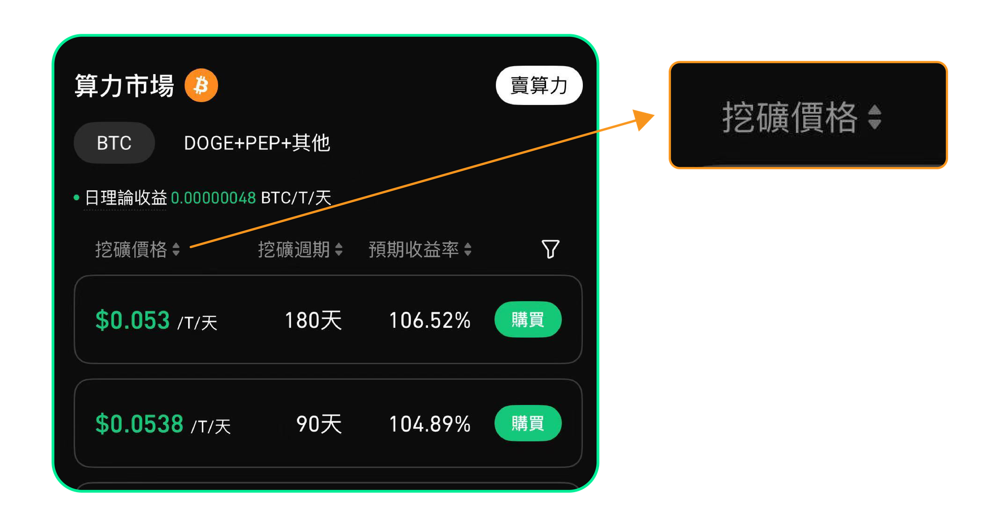 可直接向礦工購買算力,價格更透明,挖礦收益歸你。